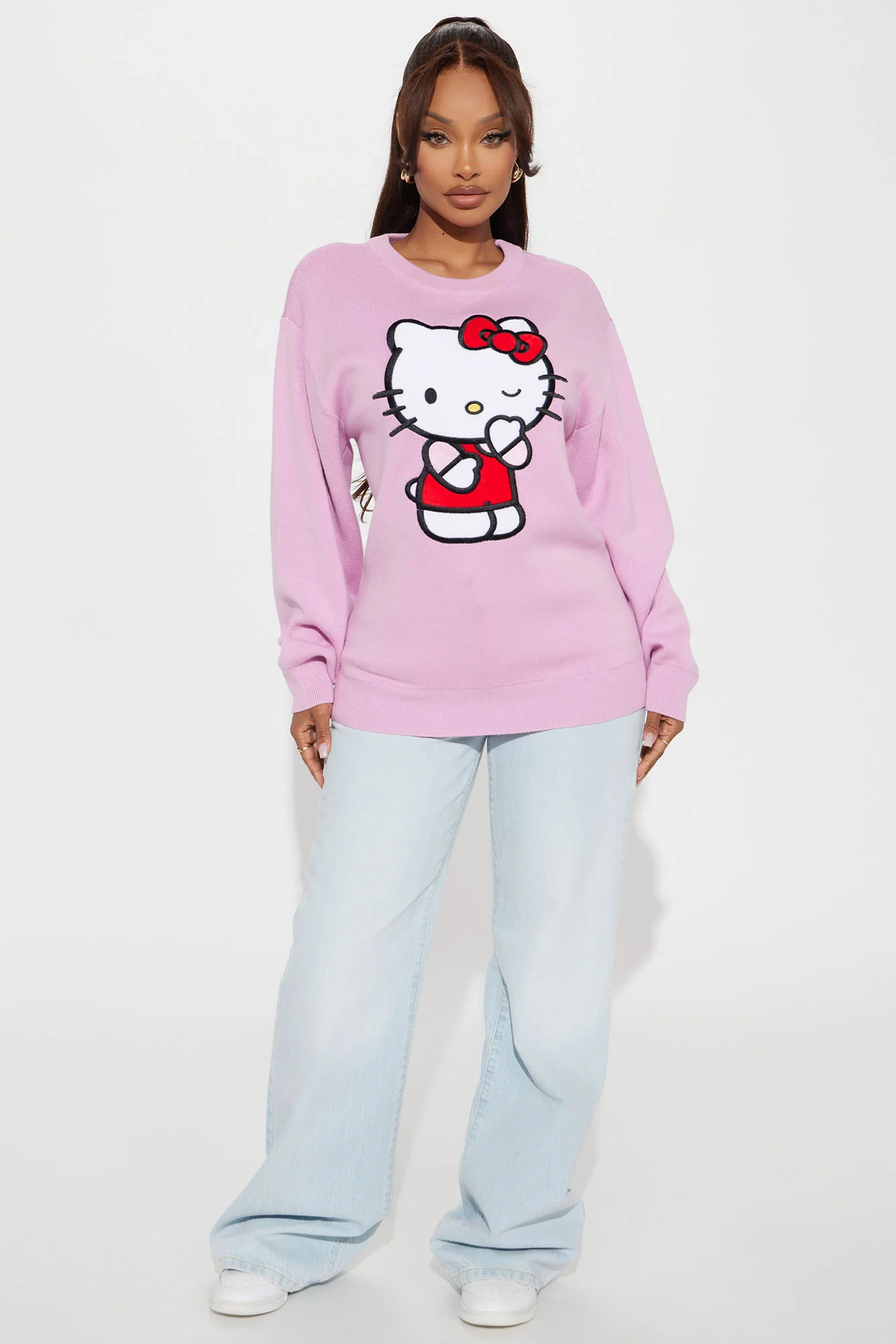 The Hello Kitty Wink Sweater is the ultimate blend of playful charm and cozy comfort. Made from soft, high-quality knit fabric, this sweater features an adorable Hello Kitty winking face graphic that adds a touch of fun to your wardrobe. Its relaxed fit, crew neckline, and ribbed cuffs and hem ensure a snug yet stylish look. Perfect for casual outings, lounging, or adding a bit of whimsy to your everyday style, this sweater pairs effortlessly with jeans, skirts, or leggings.