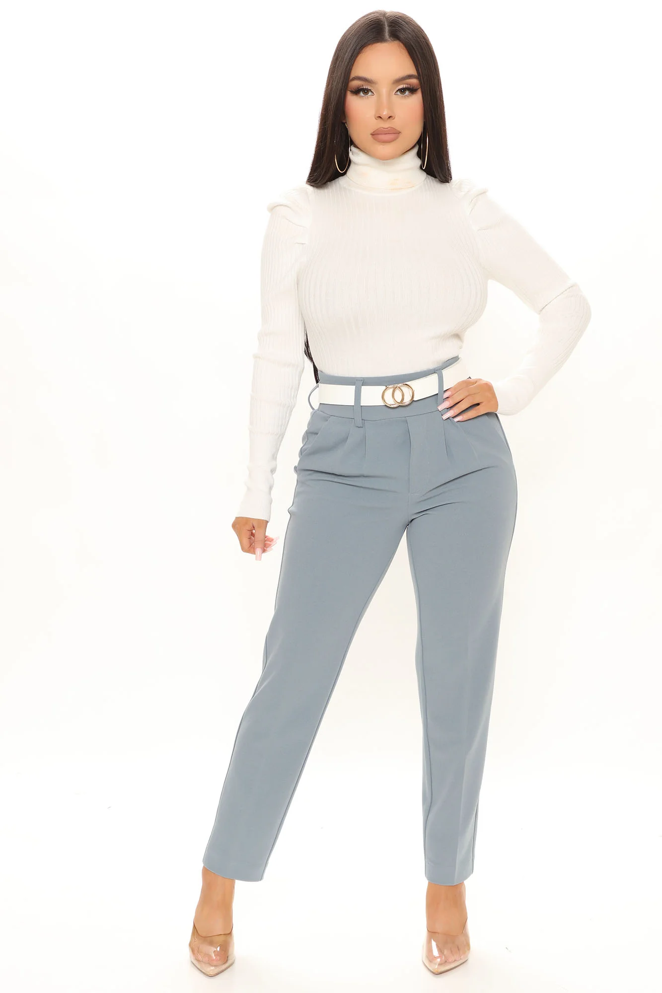 The Stay A While Trousers are the perfect combination of comfort and sophistication, designed to elevate your everyday wardrobe. Made from soft, breathable fabric with a touch of stretch, these trousers feature a relaxed fit and a flattering high-waisted design. The tailored details, such as pleats and functional side pockets, add a polished touch, while the versatile silhouette makes them ideal for work, casual outings, or lounging in style. Pair them with a tucked-in blouse or a cozy sweater for an effortlessly chic look.