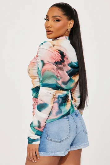 Ruched Mesh Top